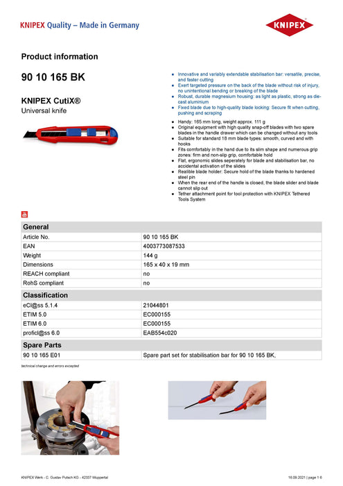 Knipex-9010165BK Cortador retráctil universal CutiX